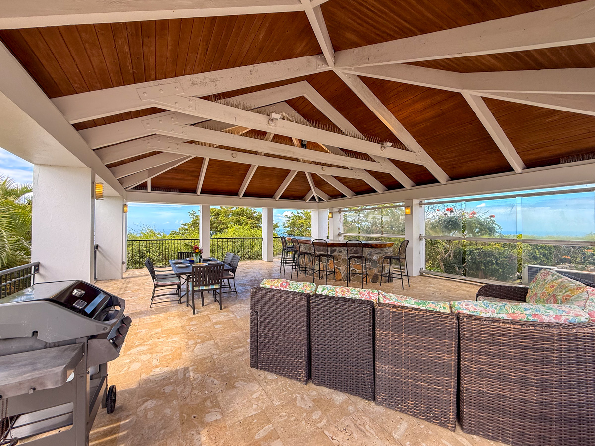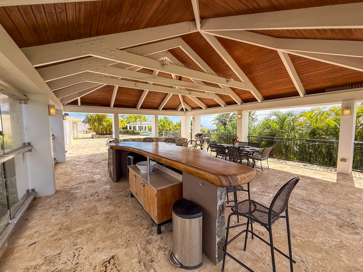 - Separate open-air pavilion for lounging, dining, and entertaining with a wet bar, grill, and lounge seating